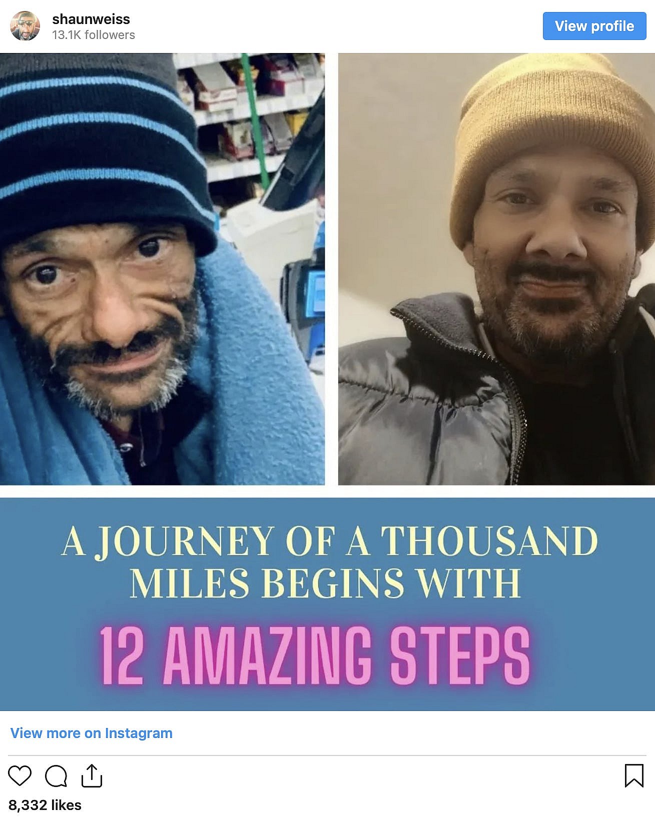 In January of this year, the Heavyweights star updated his Instagram followers on his recovery from his methamphetamine addiction, sharing an uplifting comparison between his past and current selves adorned with the caption, “A journey of a thousand miles begins with 12 amazing steps.”