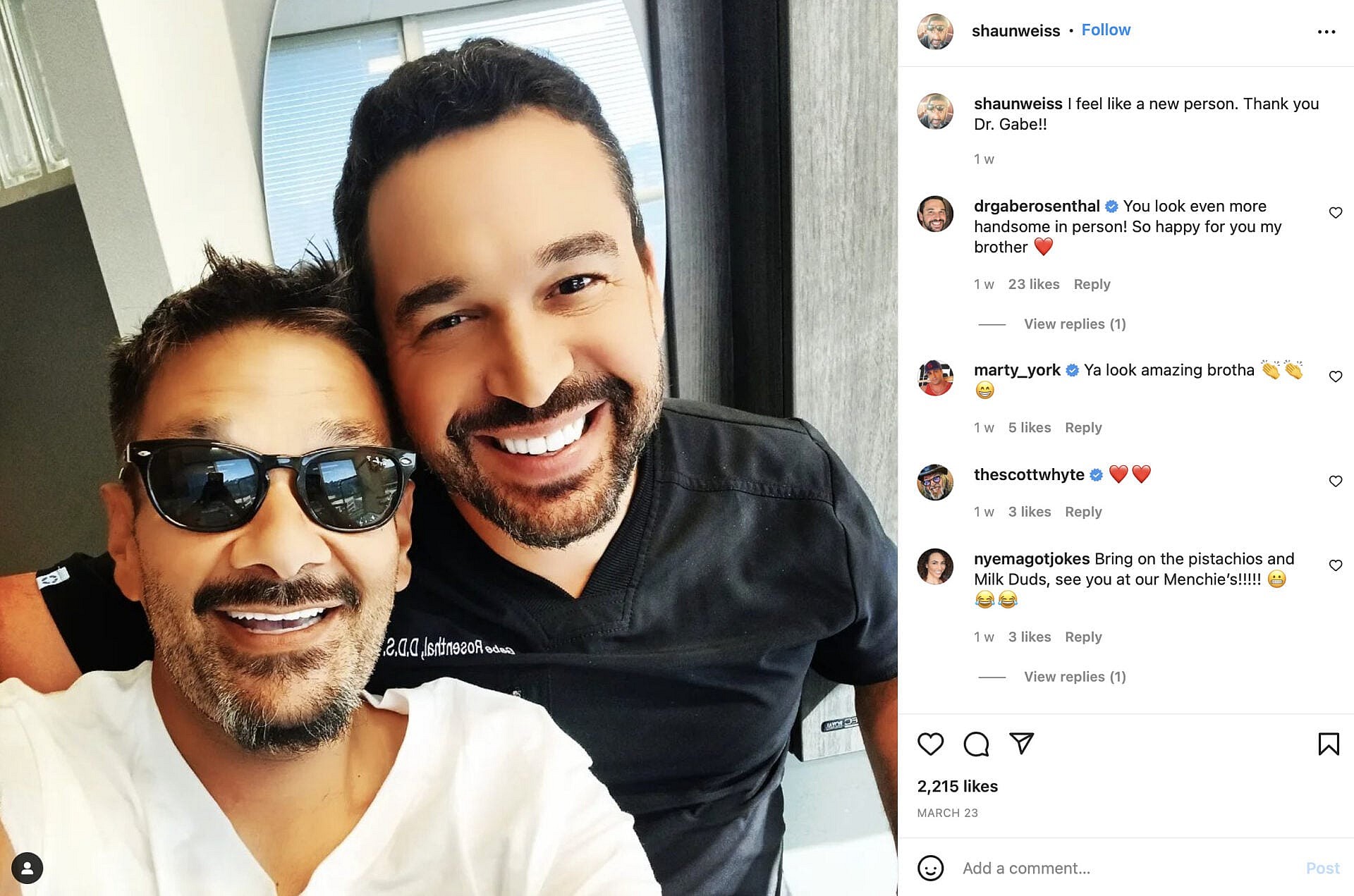 “I feel like a new person,” wrote Weiss sharing a picture of himself with Rosenthal, ecstatically adding, “Thank you Dr. Gabe!”
