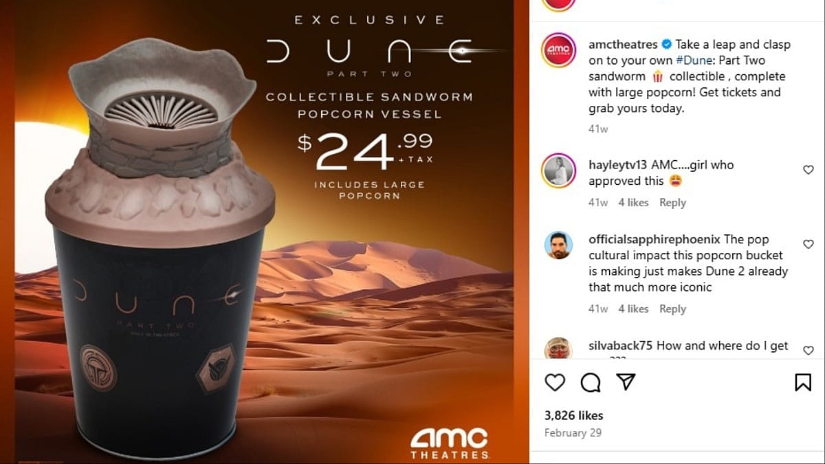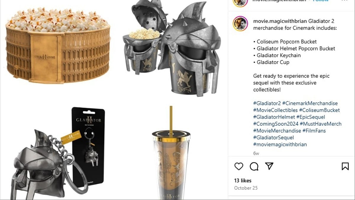 “Finish the popcorn, scan the code, and let the games begin. Experience your own augmented reality gladiator battle with the Gladiator II Popcorn AR-ENA bucket…” Cinemark Theatres posted on X while advertising the bucket. The gladiator’s helmet was another innovative bucket the theatre chain launched alongside a key chain with a Gladiator’s head and a cup.
