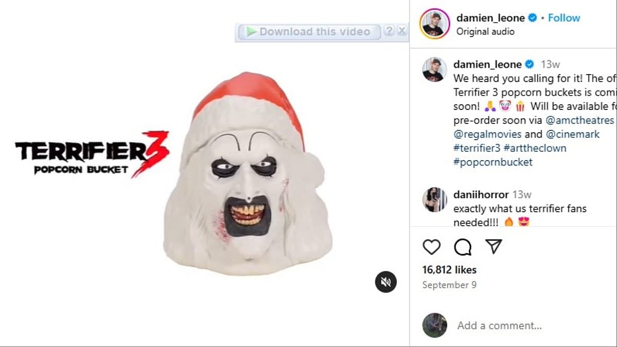 The violence in the film’s first five minutes is so unsettling that it caused a string of walkouts and episodes of vomiting in the theatres. For a popcorn bucket, the creators chose a model of Art’s grim-looking head with his Santa hat as the lid. While it is not the most creative of designs, the sheer impression of the users drawing popcorn from the killer’s head in the theatre is immense, especially with everyone freaking out around you.