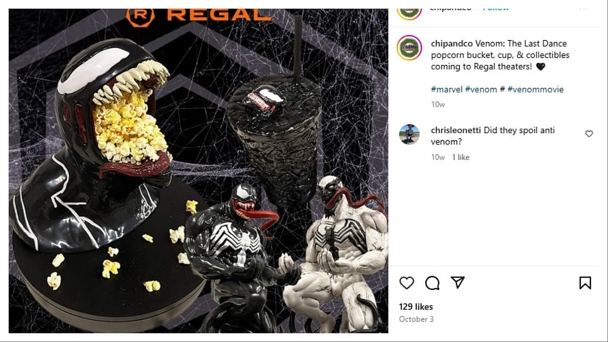 The film’s theatre run featured one of the most suggestive popcorn buckets of 2024. The bucket is a spooky model of Venom’s head with a whole slimy tongue poking out between the exposed teeth. Users have to stick their fingers down Venom’s throat to retrieve the popcorn, which is a whole adventure in a theatre setting. The drink holder is also a venom-themed cup coated with the venom-slime.