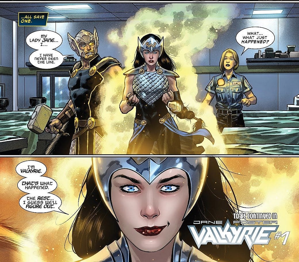 Foster’s time as Thor ends when she eventually loses her battle to cancer and dies. However, this is comics and she is given a second life when Thor and Odin resurrect her as she stands at the gates of Valhalla.