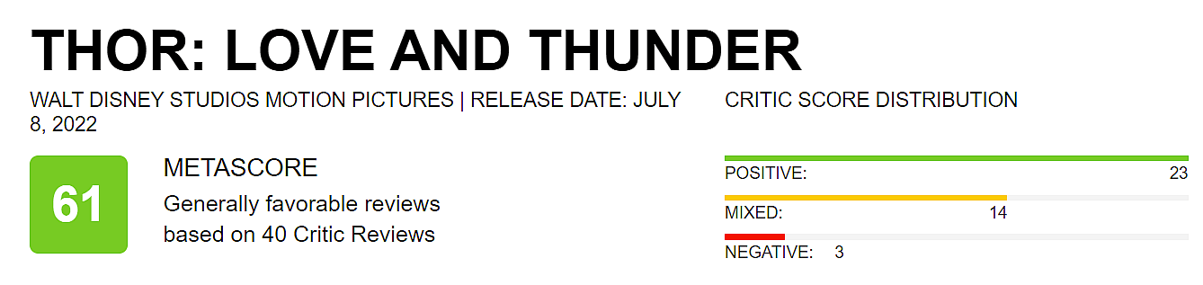 What do you make of these critic reviews for Thor: Love and Thunder?