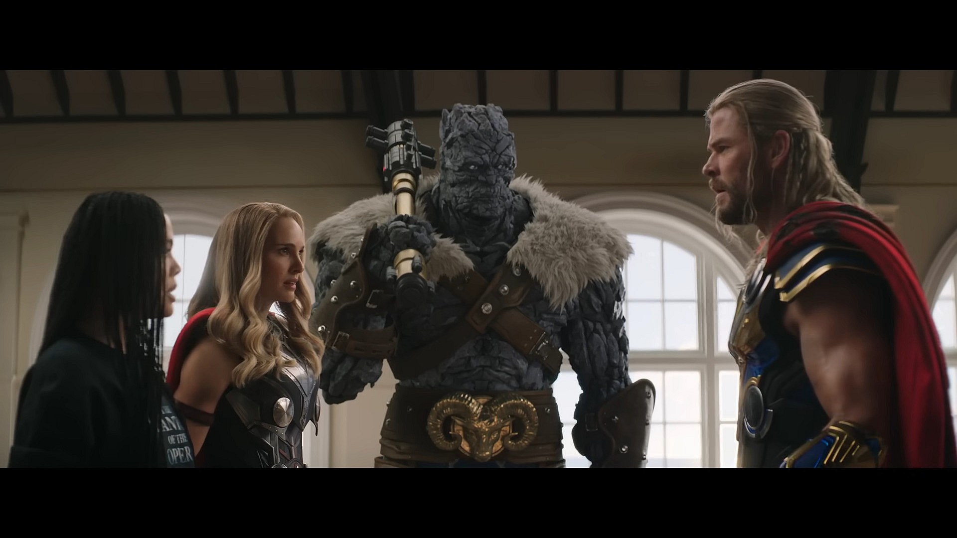 Following a meet-up between the film’s principal cast in New Asgard, as seen in most of its publicly released teaser material, Thor and company are met by Gorr, who proceeds to kidnap a number of Asgardian children.