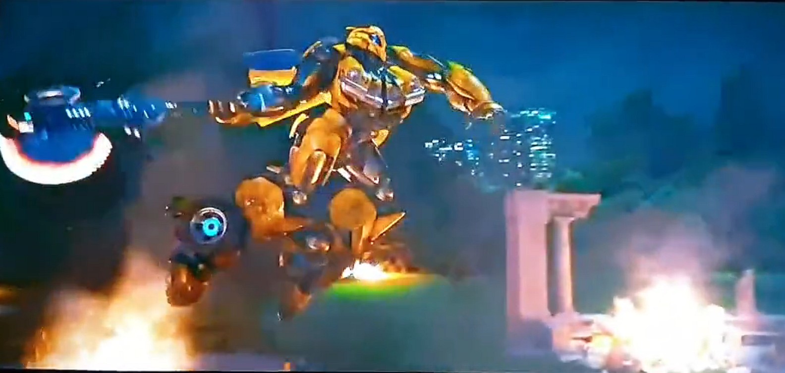 In the new TV spot shared to Twitter by user ROTBTrailer Bumblebee is seen leaping in air the wielding a giant axe.