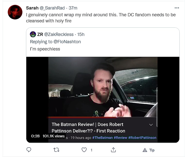 _SarahRad wrote, “I genuinely cannot wrap my mind around this. The DC fandom needs to be cleansed with holy fire.”