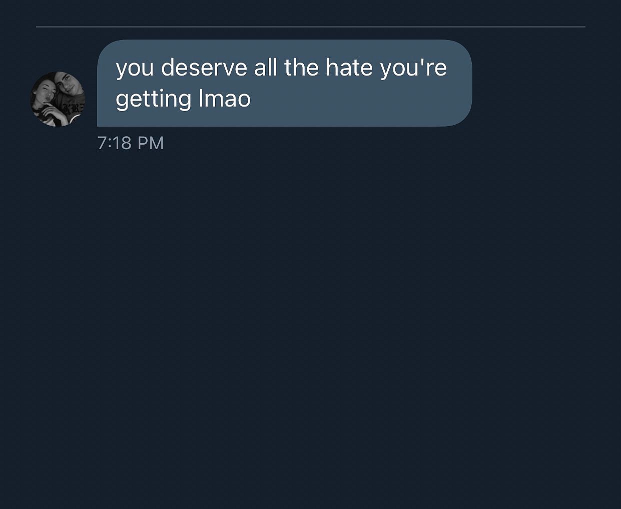 Finally, the last image sees another person write, “you deserve all the hate you’re getting lmao.”