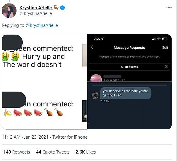 Two Wrongs Don’t Make A Right, Star Wars Host Krystina Arielle Shares Alleged Hateful Posts Directed At Her