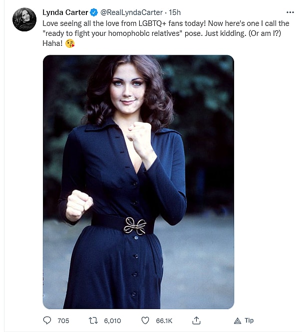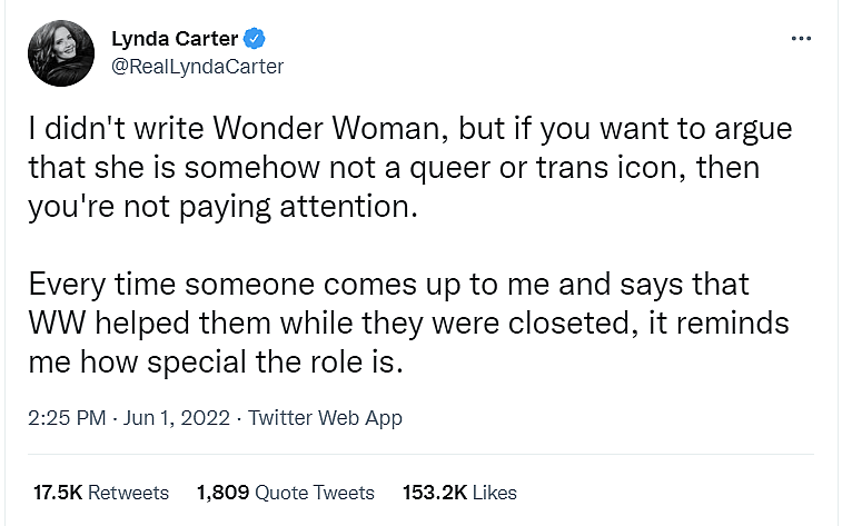 Wonder Woman actress Lynda Carter recently took to Twitter to claim that the character she played in the 1970s TV series is a queer and transgender icon.