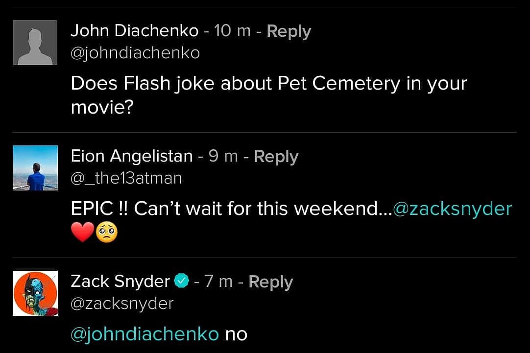In the comments on his Vero page, Snyder began answering a number of fan questions and revealed that his cut of Justice League will not include a couple of lines that appeared in the original, theatrical version of Justice League.