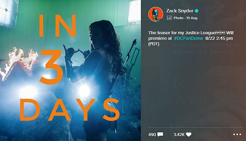 Director Zack Snyder just dropped a new teaser trailer for his upcoming Justice League panel at DC FanDome on both Twitter and Vero.
