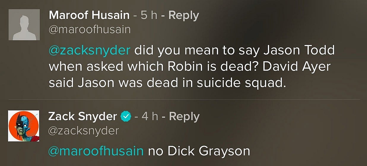 Most fans assumed Jason Todd was the Boy Wonder in question but Zack Snyder admitted he flipped the narrative. Back in 2018 he detailed that the Robin was actually “Richard” with the assumption being that was Dick Grayson.