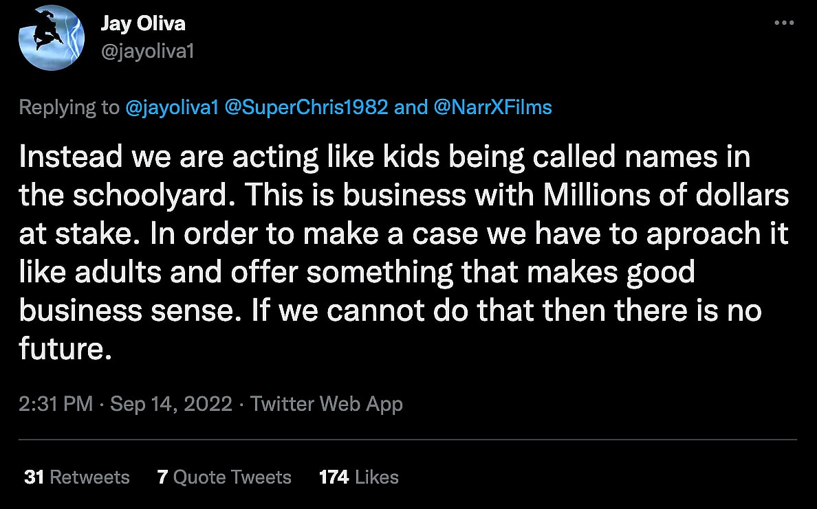 In a Twitter conversation about Snyder’s DCEU and its polarizing fandom — which was the object of castigating, targeted pieces in the trades last summer — Oliva said the rumored contact between the director and the new regime hasn’t transpired.