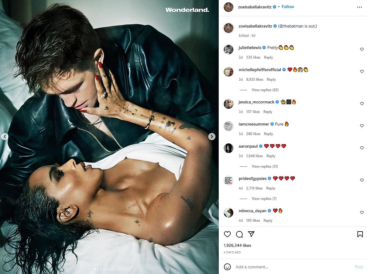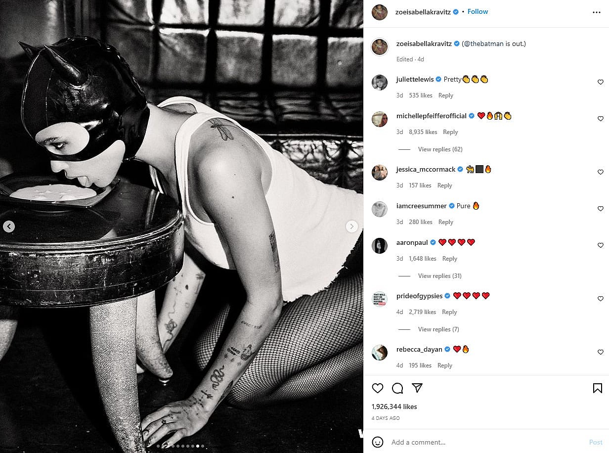 The Batman actress Zoë Kravitz recently did a photoshoot for Wonderland magazine, where she is showcased in a number of risqué poses including one where she is kneeling down licking what appears to be milk out of a bowl like a cat would.