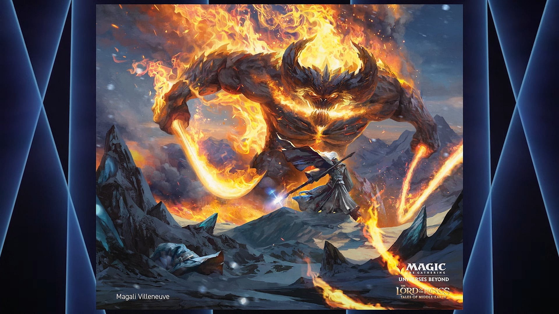 Goodman then proceeded to preview some of this art, unveiling to players their first look at Magic: The Gathering’s depictions of Frodo, the Balrog, and the sets’ new borderless scene cards, which “when brought together will form amazing recognizable scene from the books, like the climactic battle of Pelennor Fields outside of Gondor”.