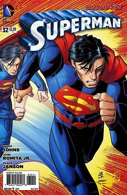 Superman #32 written by Geoff Johns with penciling from John Romita Jr. and inking by Klaus Janson begins with a