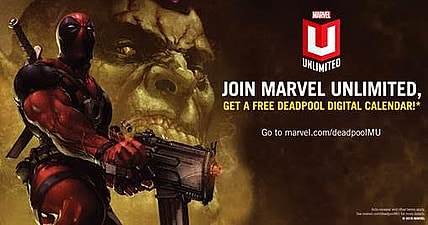 Marvel is including a Deadpool Digital Desktop Calendar for any new monthly subscribing customers to Marvel Unlimited between February 16th