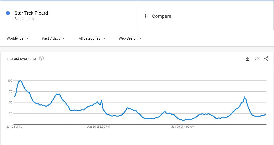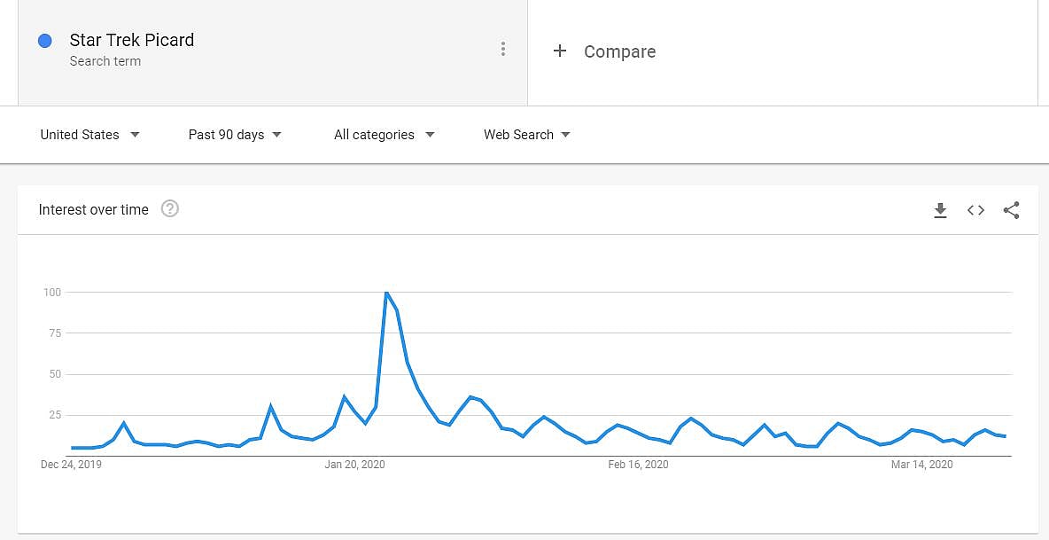 Following the first episode, Google Trends showed a significant decrease in searches for the search term “Star Trek Picard.”