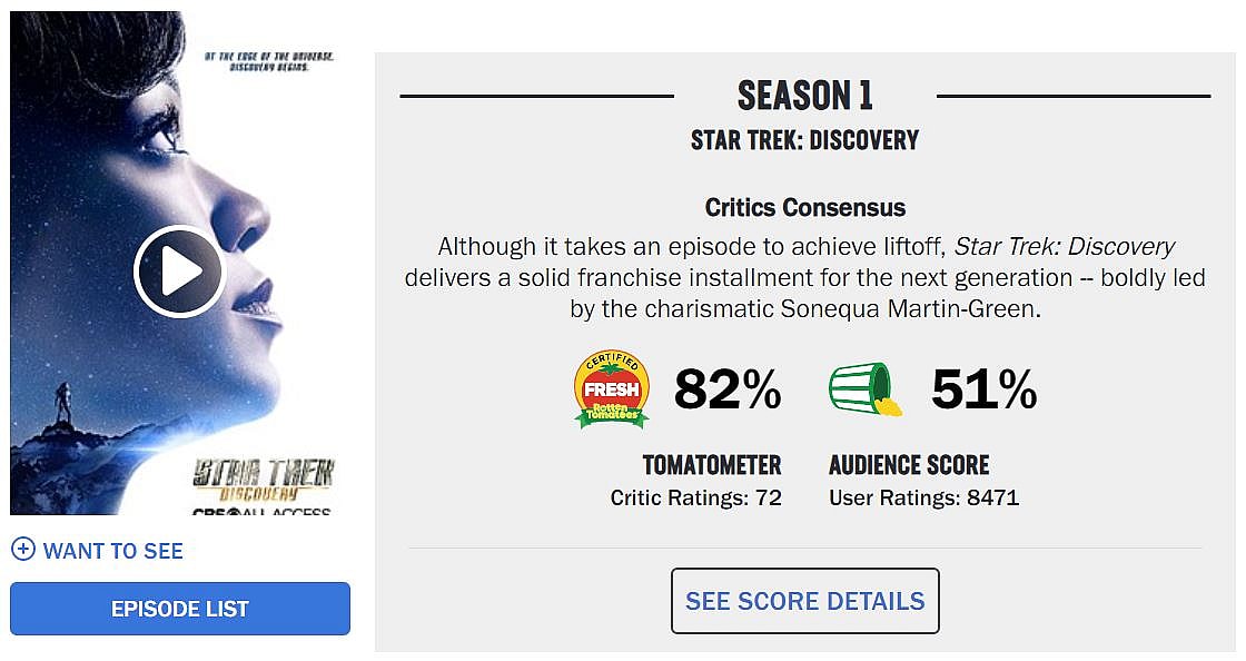 Not only did the show bleed viewers in Canada, but it received poor audience scores on Rotten Tomatoes. The first season currently has a 51% Audience Score from 8471 ratings. It has an average rating of 2.95 out of 5.