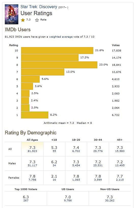 Season 2 of Star Trek: Discovery would follow the ratings of the finale of Season 1. The premiere episode would not appear on Numeris’ Top 30 chart for its premiere week. The lowest ranked show was America’s Got Talent: The Champions with 978,000 viewers.