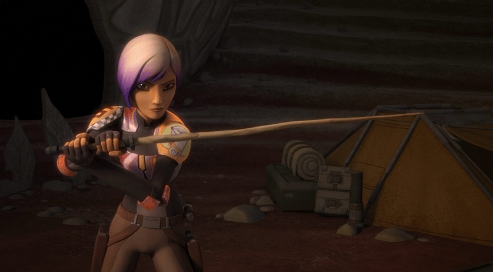 In that episode, Kanan and Ezra Bridger take Sabine to a remote location on Lothal, where Kanan begins to instruct Sabine how to use a lightsaber with a wooden training saber.