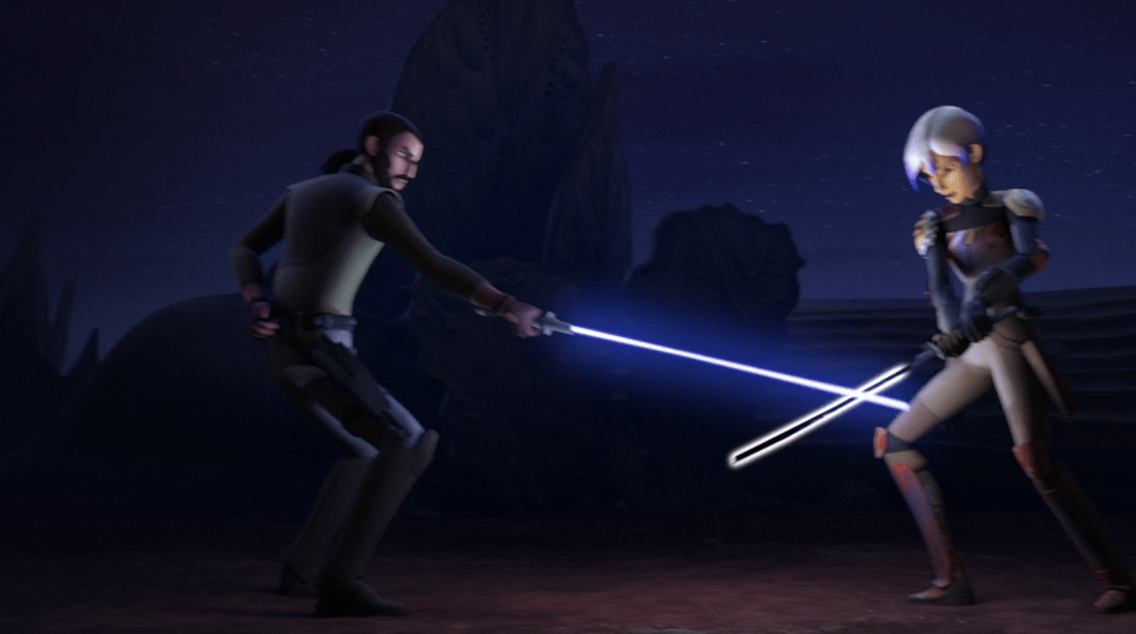 As the episode progresses, Kanan shows just how untrained Sabine is as he mercilessly parries and counters all of her attacks. He eventually tells her, “Every mistake is a limb lost. The blade is never at rest.”