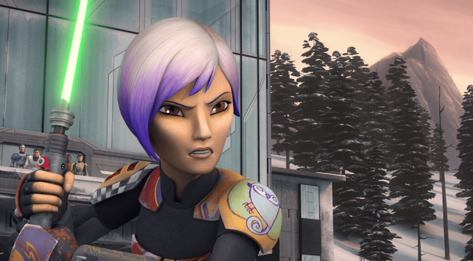 By the next episode of Star Wars Rebels,”Legacy of Mandalore,” Wren used Ezra Bridger’s green lightsaber to disarm and defeat Gar Saxon, who had taken the Darksaber as his own.