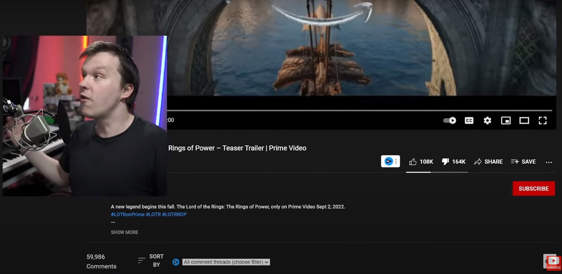YouTuber Disparu reports that Prime Video appears to have deleted over 22,000 comments from their The Lord of the Rings: The Rings of Power trailer.