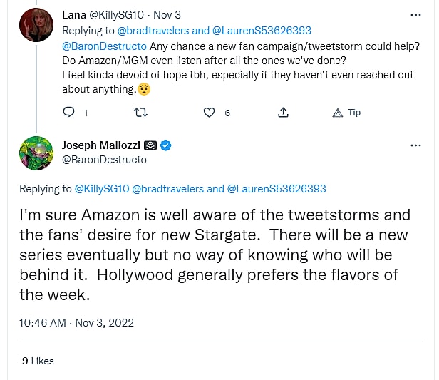 He tweeted, “I’m sure Amazon is well aware of the tweetstorms and the fans’ desire for new Stargate. There will be a new series eventually but no way of knowing who will be behind it.”
