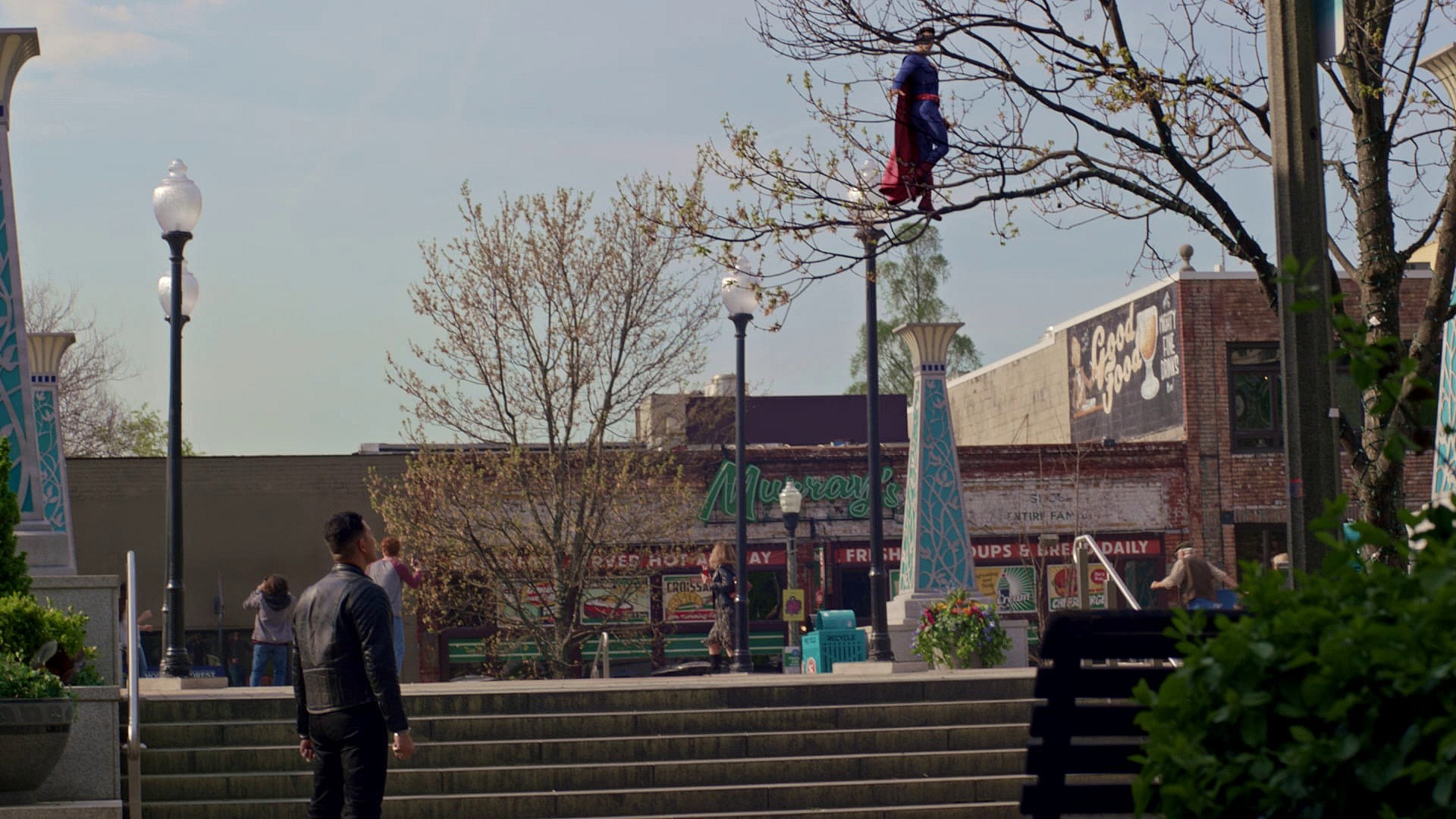 Though he does not directly appear on camera, Superman makes a brief CGI appearance in the series’ first episode, captured on various cell phone and security cameras fighting an unknown blue metahuman.