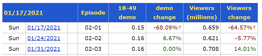 Episode 2 viewership was at 621,000 and the show debuted with viewership at 659,000. It’s a 14% increase in viewership from the second episode and a little less than 7.5% increase from the season premiere.