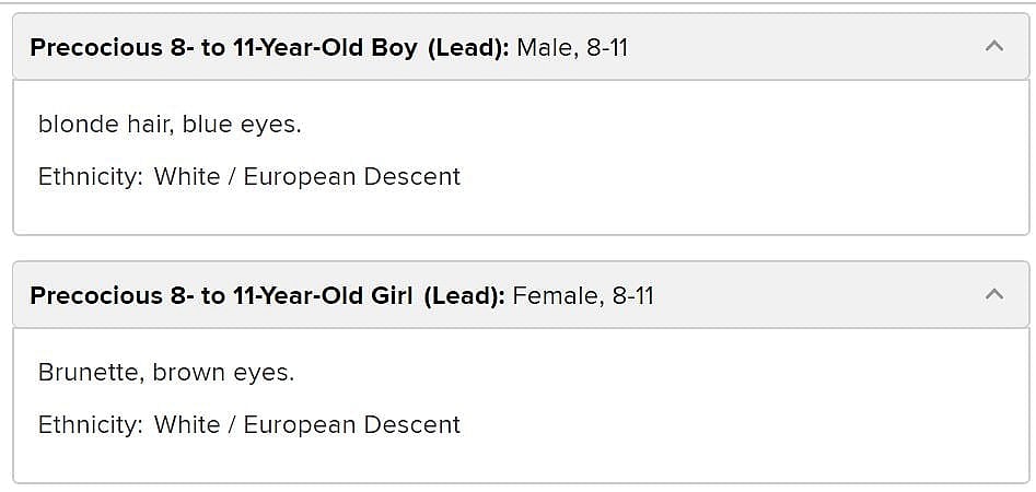 Maybe the most interesting and telling part of this casting call is they want both children to be precocious.