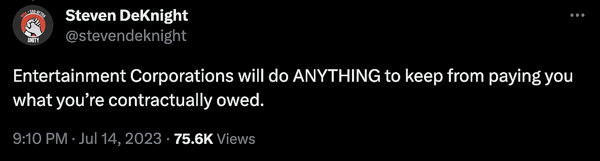 DeKnight then added, “Entertainment Corporations will do ANYTHING to keep from paying you what you’re contractually owed.”