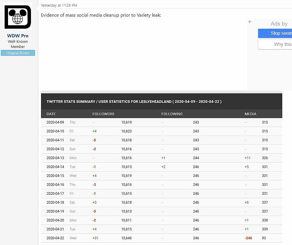WDW Pro is the Disney leaker who previously reported that Disney executives were “livid” at Lucasfilm hiring Leslye Headland, the former personal assistant to Harvey Weinstein.