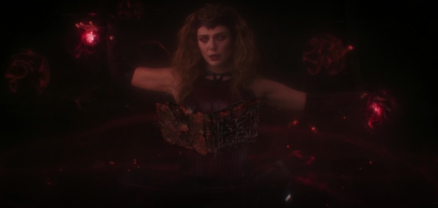 A mid-credit scene would reveal Wanda living in an isolated cabin on a lake in the middle of the mountains, where she’s using an astral form to read the Darkholde. While reading the book, she hears one of her sons call out to her for help.