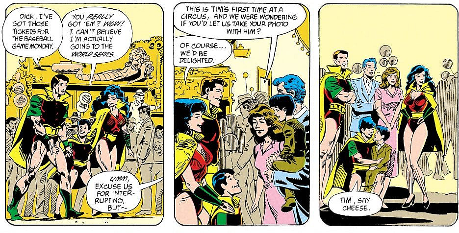 July then states, “First of all, that has nothing to do with Tim Drake. That is not Tim Drake’s backstory. That is not his backstory. He was a youngster that had admired both Batman and Robin, Dick Grayson’s Robin. And at some point he does become Robin after first being, of course, trained, I think it was by Alfred first, and then it was by Batman and Dick Grayson. This is not Tim Drake. This is not Tim Drake. If anything it is more akin to Jason Todd than Tim Drake. That’s not Tim Drake.”