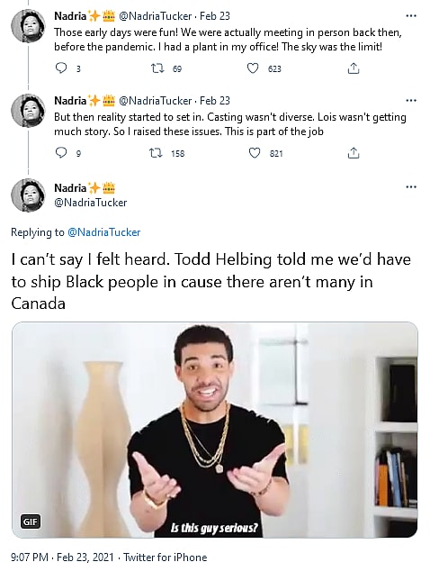 On the day of Superman & Lois’ debut, Nadria once again expressed her frustrations with the show on Twitter, tweeting “It’s premiere day for the most recent project I worked on and I’d love to be excited! But nah.”