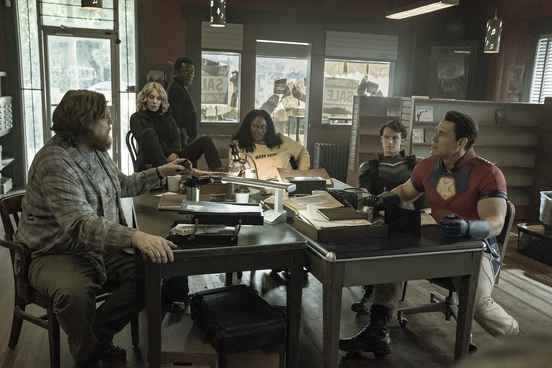 In the clip, Cena’s Peacemaker is seen exiting his patriotic-themed vehicle as he goes to meet up with a number of individuals employed Amanda Waller for breakfast.
