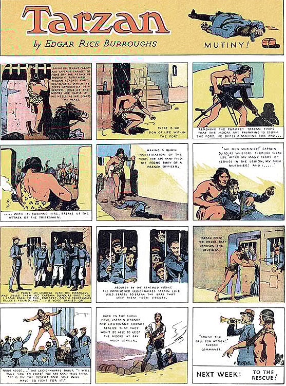 In the popular movies of the 1930s, Tarzan, portrayed by Johnny Weissmuller, speaks crude pidgen English and is childlike. Unfortunately for Burroughs, that’s the version of Tarzan that the general public was familiar with.