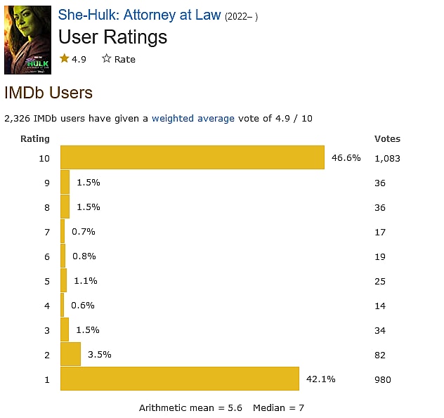 An unsurprisingly desperate move from the House of Mouse in light of the upcoming Disney Plus series’ widely-panned and cringe-inducing marketing campaign – which came replete with a title card declaring it as a “Must She Series” – August 17th saw various outlets including comicbook.com, Inside The Magic, The Direct, and Screen Rant all running headlines sensationally warning that She-Hulk had been targeted for review bombing on IMDB.