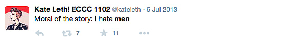 For example, in 2013, Leth tweeted, “Moral of the story: I hate men”.