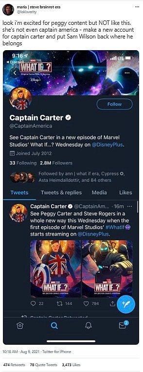 Fans reacted to this change to the Twitter account and the promotion of Captain Carter with outrage and disappointment among other emotions.