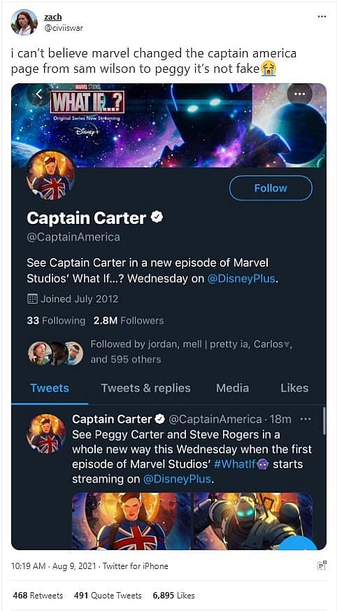 What do you make of the outrage, disappointment, and other emotions these Marvel stans are expressing towards Marvel for changing the official Captain America account to Captain Carter in order to promote the upcoming What If…? series on Disney Plus?
