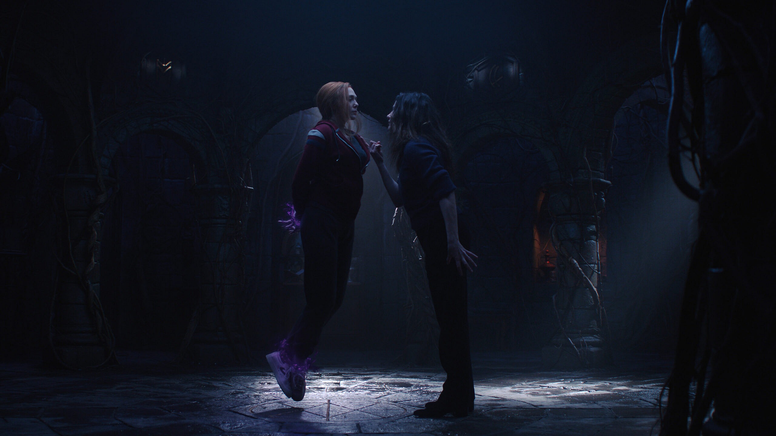 She explained, “There was a version of the commercials where it was Dr. Strange trying to reach out to her, that he was actually behind the commercials, and we moved off of that idea.”