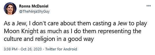 One user, @TheNinjaShyGuy, shared their opinion as a Jewish individual and said “I don’t care about them casting a Jew to play Moon Knight as much as I do them representing the culture and religion in a good way.”