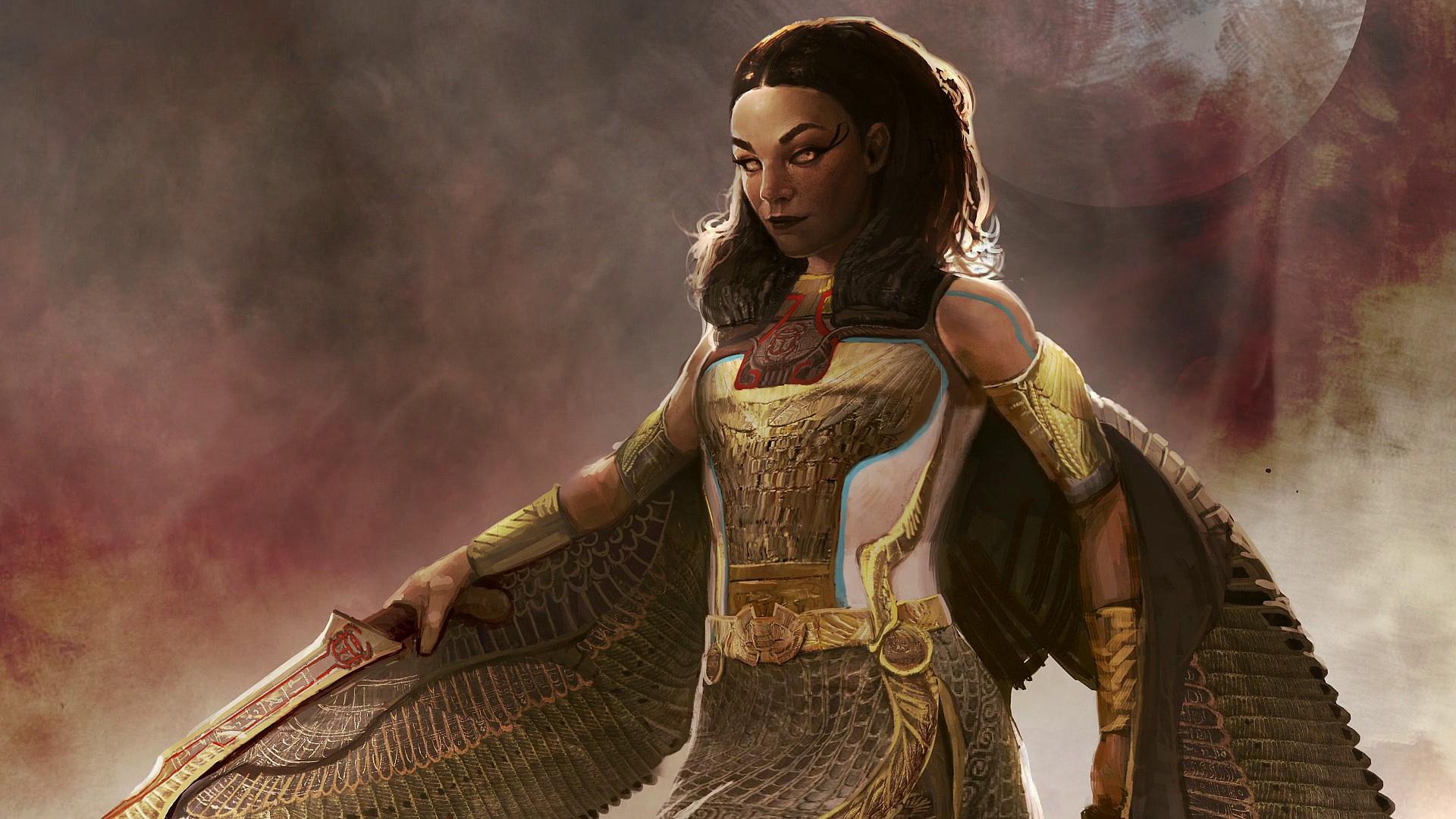 Informed by one of the avatars of Ennead that they needed “more avatars than we have” to fight back the villains, the Egyptian archeologist agrees to act as the avatar of Tawaret, receiving superhuman abilities, a pair of swords, and a of metal wings in exchange for her servitude.