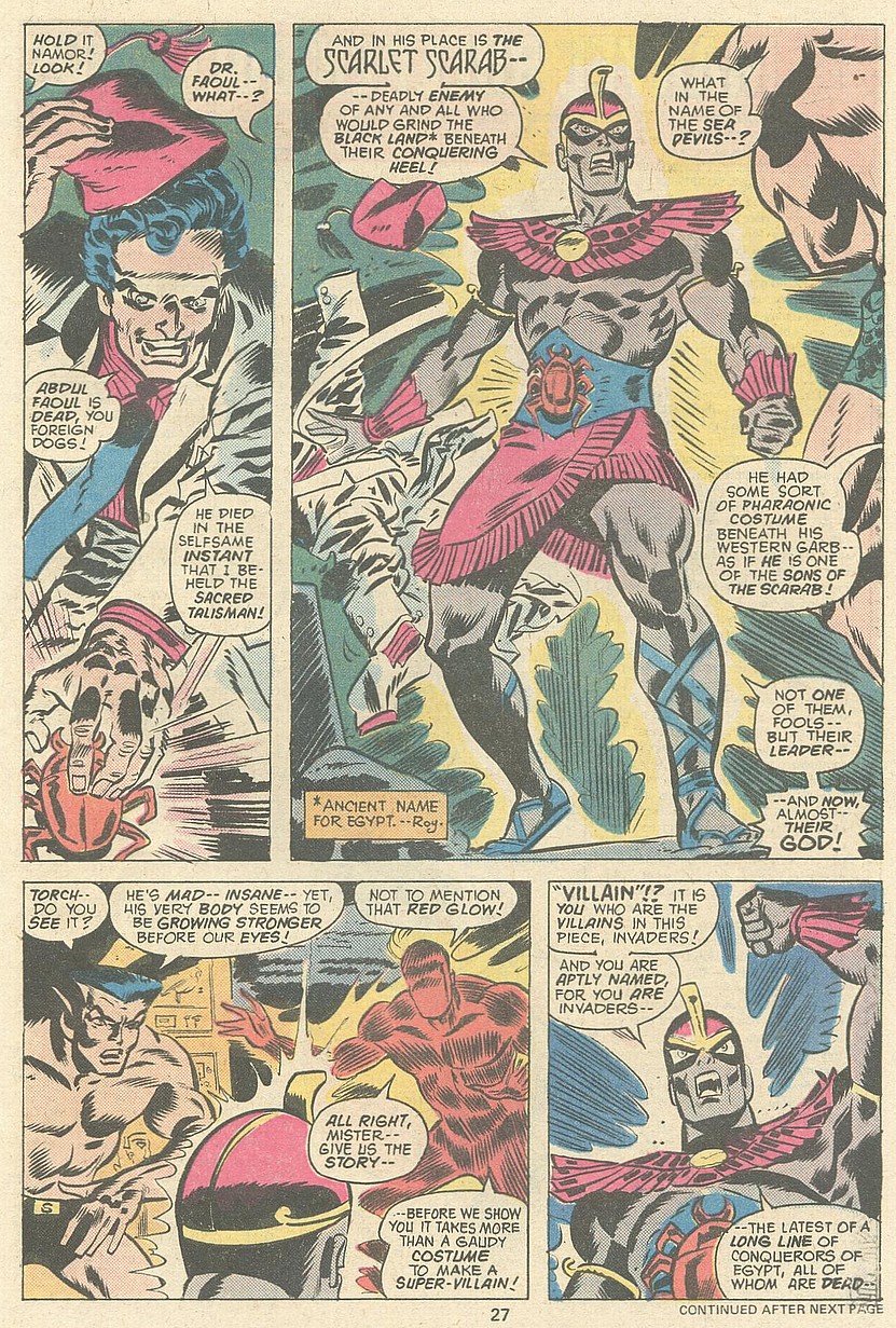 First donning the identity as nothing more than a costumed identity, Abdul served as the first Scarlet Scarab during World War II, leading a group called the Sons of the Scarab in fighting against Britain to end their control of Egypt – a goal which eventually led them to misguidedly ally themselves with the Axis and found them opposed to the Invaders.