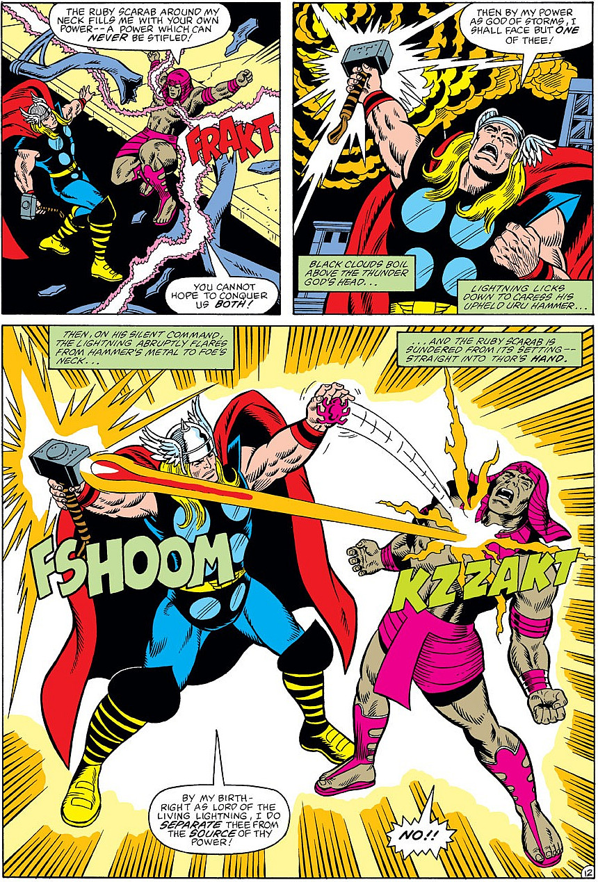This goal would eventually bring him to blows with Thor, though after a short battle, the God of Thunder separated Mehmet from the Ruby Scarab, returning him to normal before agreeing to let him take the artifact back home.