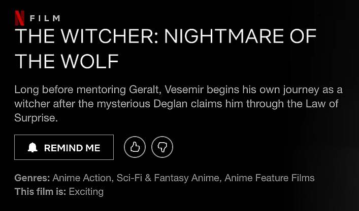 The description read, “Long before mentoring Geralt, Vesemir begins his own journey as a witcher after the mysterious Deglan claims him through the Law of Surprise.”