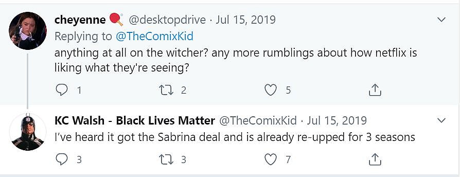 Editor-in-Chief of Geeks World Wide KC Walsh reported on Twitter back in July 2019, “I’ve heard it got the Sabrina deal and is already re-upped for 3 seasons.”